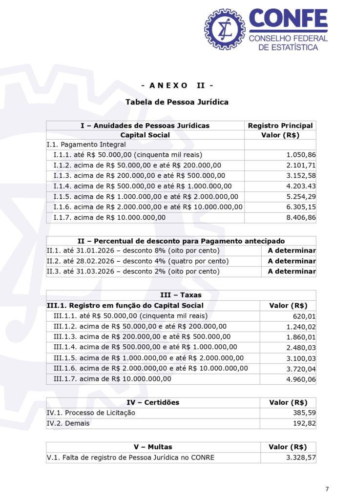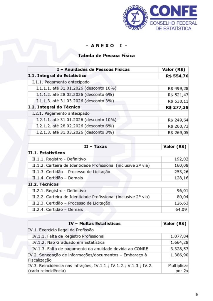 DISPÕE SOBRE O VALOR DE ANUIDADES DEVIDAS AOS CONREs PARA O EXERCÍCIO DE 2026